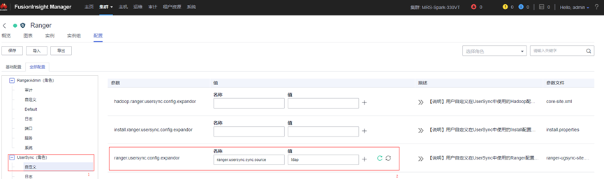 2.在UserSync(角色)的自定义配置usersync.config.expandor新增如下配置项: