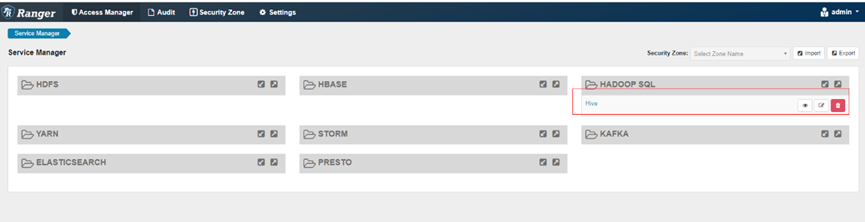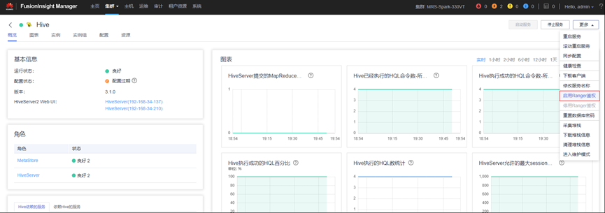 3.进入Ranger的webui界面,选择Hive