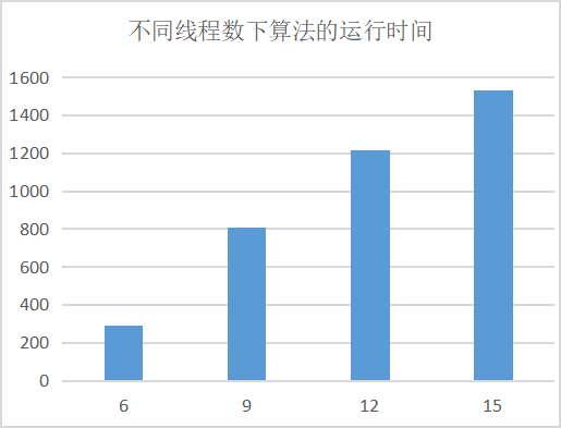结果分析:可见实验条件下线程数对算法的时间效率有影响,且随着线程数增大,运行时间变长。可能是本实验中单个线程执行的任务复杂度较低,而消息传递的过程相对较复杂,因此线程越多,并行执行计算带来的时间优势不明显,反而在信息传递的过程中耗费较多时间,拖慢程序的运行速率。因此在实际中运用MPI编程消息传递解决问题时,要充分考虑问题的复杂度、规模等因素,选择合适的线程数和分配策略。