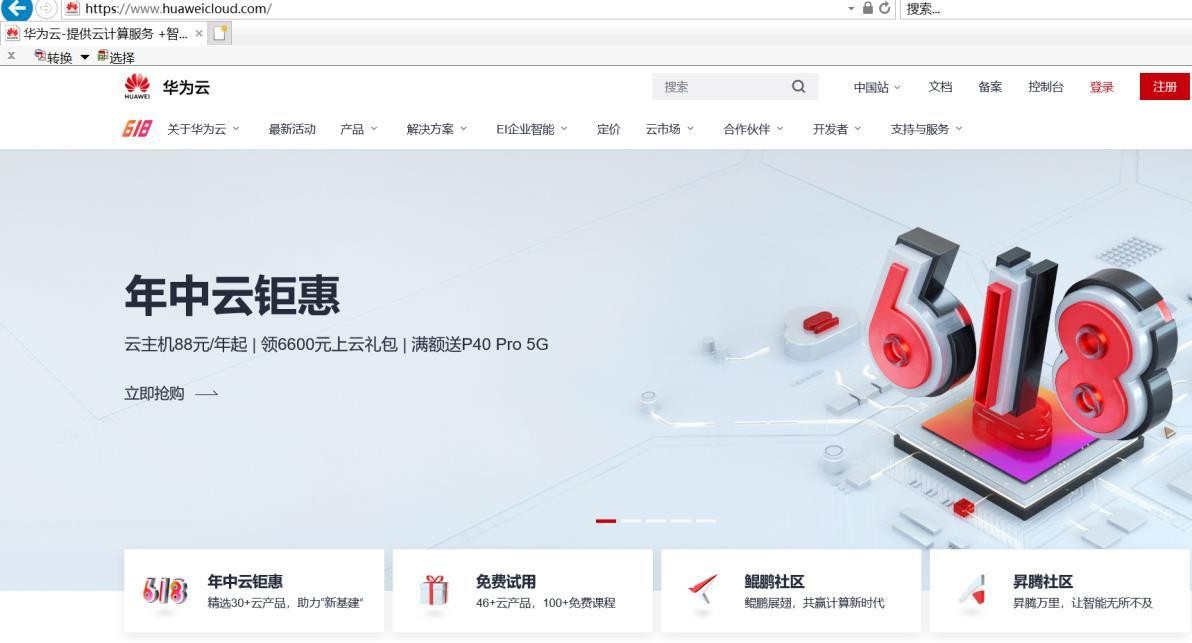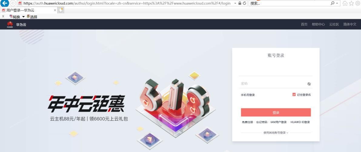 打开浏览器,输入华为云的域名:https://www.huaweicloud.cn ,点击右上角登录按钮,输入用户名与密码。