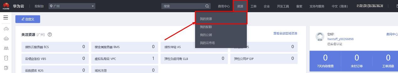 点击进入“控制台” “资源” “我的资源”。如下图所示: