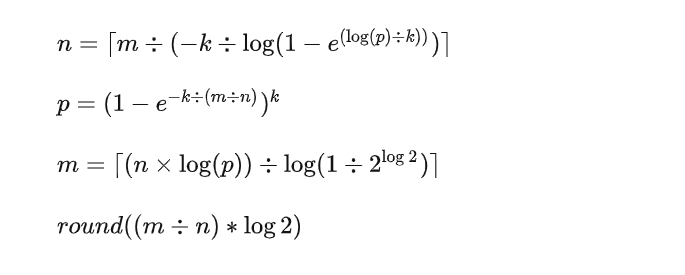 在实际使用布隆过滤器时,首先需要确定 n 和 p,通过上面的运算得出 m 和 k;推荐一个布隆过滤器计算器可以选出合适的值。
