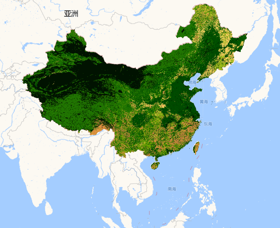 | B1 | Byte | 1000m | 年 | 255 | 常绿针叶林:覆盖度>60%和高度超过2m,且常年绿色,针状叶片的乔木林地 常绿阔叶林:指覆盖度>60%和高度超过2m,且常年绿色,具有较宽的叶片的的乔木林地 落叶针叶林:指覆盖度>60%和高度超过2m,且有一定的落叶周期,针状叶片的乔木林地 落叶阔叶林:指覆盖度>60%和高度超过2m,且有一定的落叶周期,具有较宽叶片的乔木林地 混交林:指前四种森林类型的镶嵌体,且每种类型的覆盖度不超过60% 郁闭灌木林:指覆盖度>60%,高度低于2m,常绿或落叶的木本植被用地 稀疏灌木林:指覆盖度在10%~60%之间,高度低于2m,常绿或落叶的木本植被用地 有林草地:森林覆盖度在30%~60%之间,高度超过2m,和草本植被或其它林下植被系统组成的混合用地类型 稀树林地:森林覆盖度在10%~30%之间,高度超过2m,和草本植被或其它林下植被系统组成的混合用地类型 草地:由草木植被类型覆盖,森林和灌木覆盖度小于10% 永久湿地:常年或经常覆盖着水(淡水、半咸水或咸水)与草木或木本植被的广阔区域,是介于陆地和水体之间的过渡带 农田:指由农作物覆盖,包括作物收割后后的裸露土地。永久的木本农作物可归类于合适的林地或者灌木覆盖类型 城市与建筑用地:被建筑物覆盖的土地类型 农业与自然植被镶嵌体:指由农田、乔木、灌木和草地组成的混合用地类型,且任何一种类型的覆盖度不超过60% 冰川:指常年由积雪或者冰覆盖的土地类型 裸地与稀疏植被:指裸地、沙地、岩石,植被覆盖度不超过10% 水体:海洋、湖泊、水库和河流,可以是淡水或咸水 |