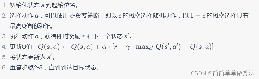 在每个时间步,Q-learning根据以下更新规则更新Q值: