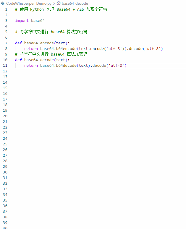 在 VSCode 中直接输入你的需求,然后 CodeWhisperper 会给我们一个完整的实现示例,可以看到代码重写完全正确。