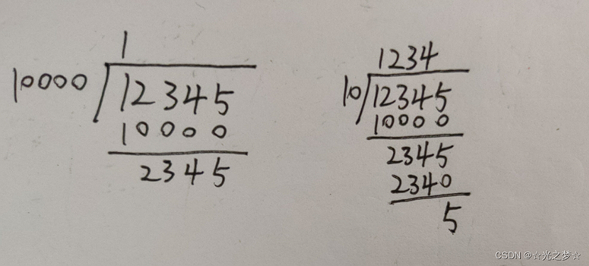 如图,所以12345除以10000的余数就是:2345,12345除以10,余5