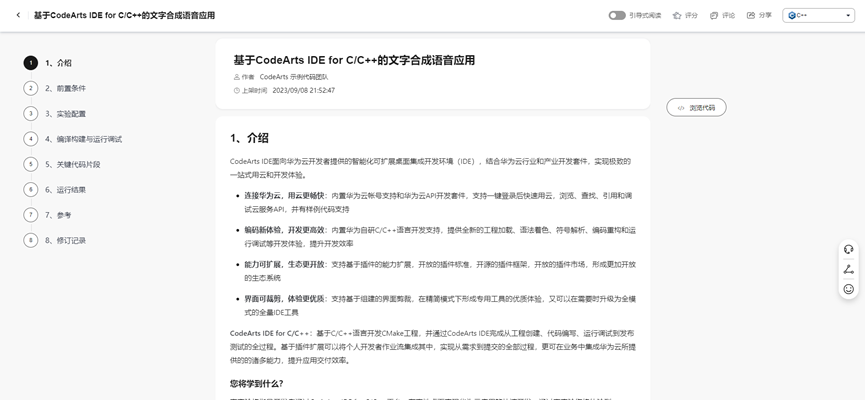- 基于CodeArts IDE for C/C++的文字合成语音应用(https://codelabs.developer.huaweicloud.cn/codelabs/samples/bf38226206004fbd9090157ef8a6d3e5)