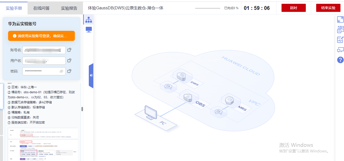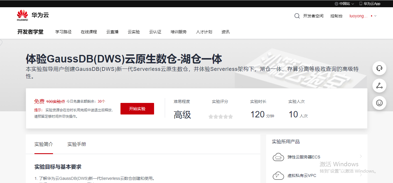 再次,如果有感兴趣的同学,推荐可以去免费体验一波GaussDB(DWS)云原生数仓,体验地址如下:https://lab.huaweicloud.cn/experiment-detail_2567?ticket=ST-92193361-ucHuR4bX1e06gxEt6cL1Xe7a-sso