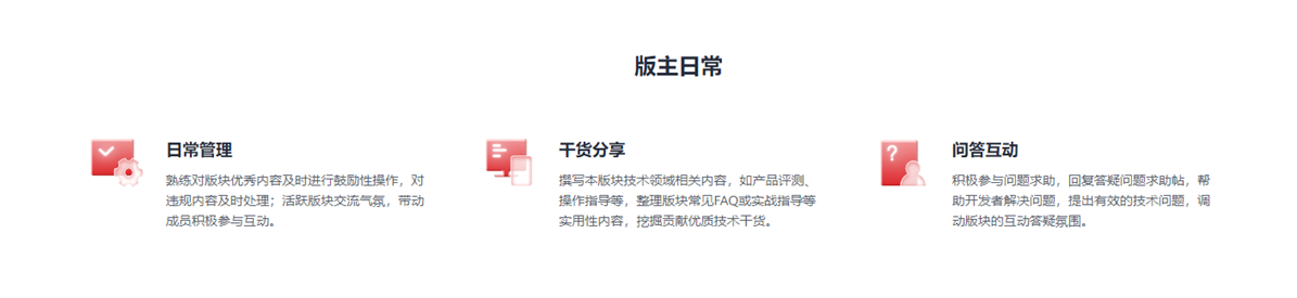 近3年来,版主们的互动内容量有11万+次;论坛的互动活跃与迭代升级离不开版主们辛勤输出与积极互动,为此近期论坛上线了优质版主展示页面,涵盖了版主相关的招募指引、版主日常、激励公示、部分优秀版主介绍、原创文章、版主申请流程及相关常见问题等。