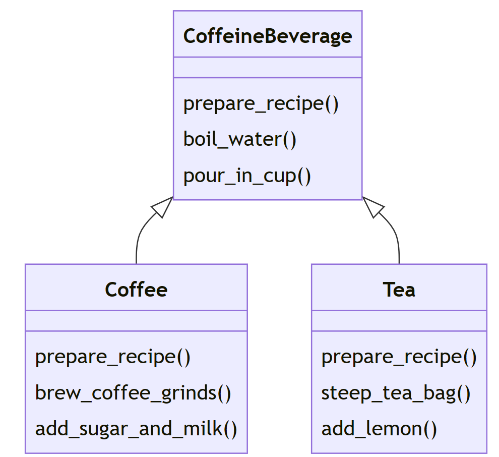 | Coffee和Tea之间存在重复代码 | 对于子类来说,CoffeineBeverage的存在可以将代码的复用最大化 |