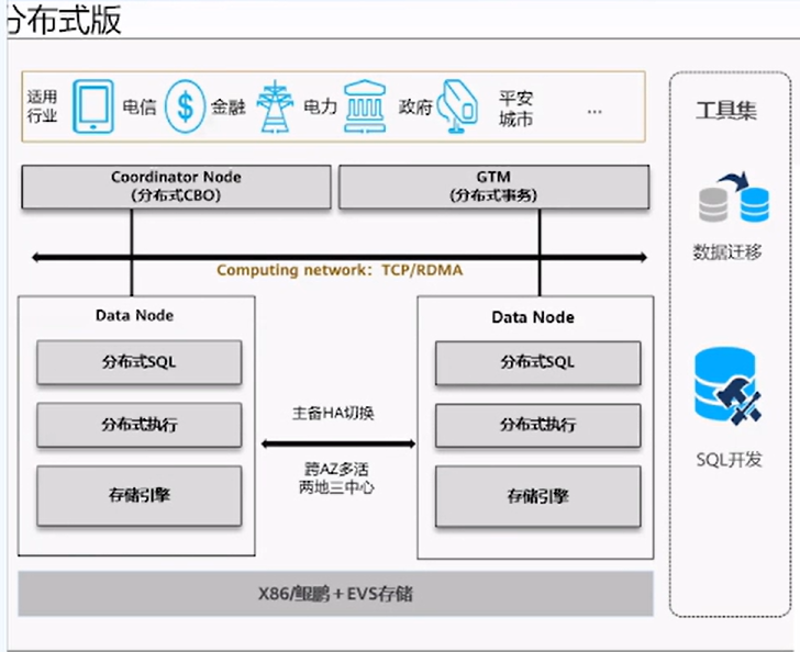 GaussDB是一种分布式数据库,采用了无共享型的架构。它内部划分为多个分片,其中包括协调节点和数据节点两大组件。