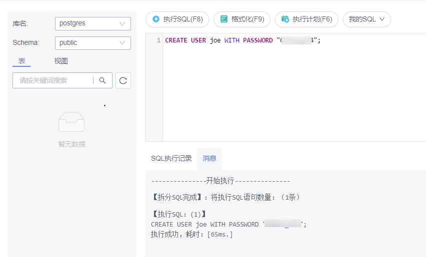 CREATE USER joe WITH PASSWORD "xxxxxxxxx";
