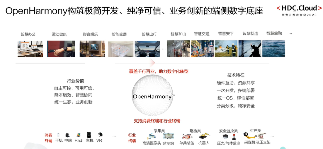 针对上面挑战我们华为开源了Open Harmony。我们的目的是构筑一个极简开发、纯净安全、弹性伸缩、支持业务创新的操作系统。