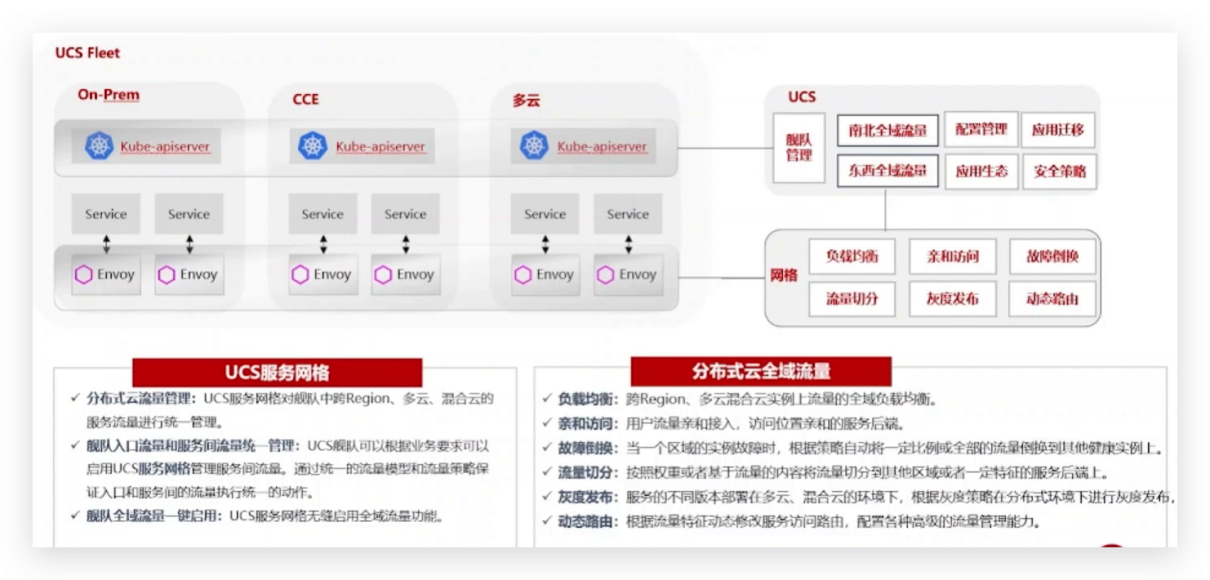 UCS服务网格通过构建分布式云全域应用流量治理架构,提供统一的流量管理和控制。以下是该架构的主要特点: