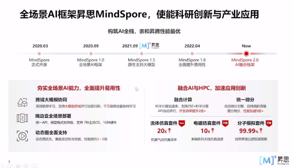 全场景AI框架昇思MindSpore,使能科研创新与产业应用。MindSpore的设计目标是让开发者可以更轻松地构建、训练和部署人工智能模型。它提供了一套完整的工具链,包括模型构建、训练算法、模型部署和推理推理等。