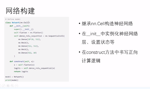 2. 神经网络构建: 使用框架API,搭建神经网络。