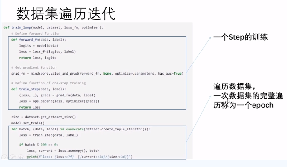 3. 模型训练: 定义模型训练逻辑,遍历训练集进行训练。