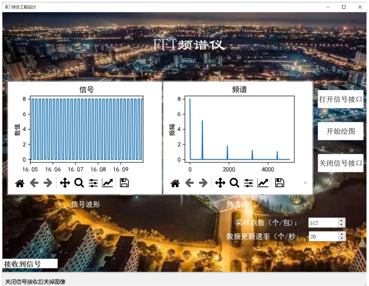 该项目原课题为基于千兆以太网的FPGA的频谱仪显示,上位机的难点显然不在于FFT的频谱分析,如何实时获取数据,与FPGA进行对接成为主要的难点。