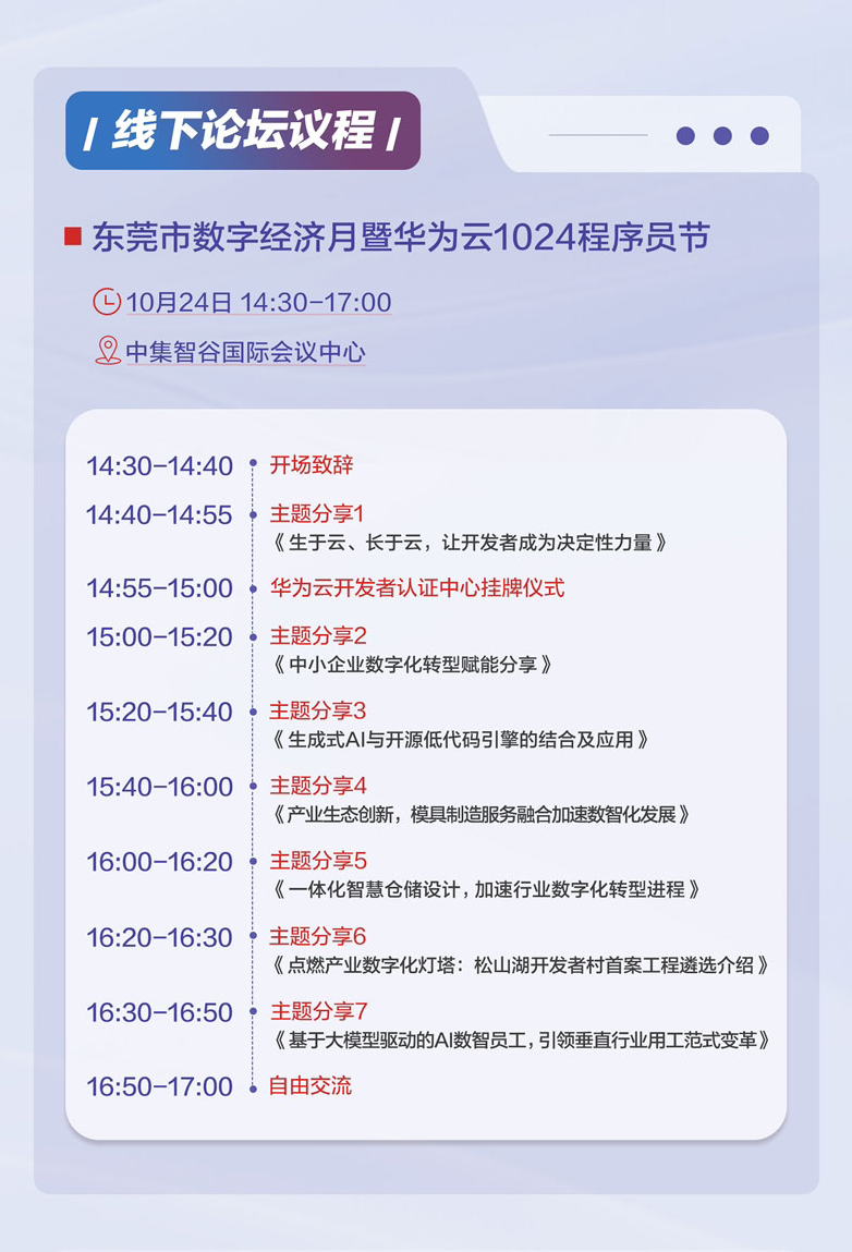 开发者是代码世界里的探索者,是产业创新的源头活水。10月24日,松山湖开发者村作为全球首个组织型开发者社区,将举办开发者特色活动,邀请华为技术专家解读行业发展趋势、分享华为云热门工具/解决方案、展示华为云优秀应用构建案例等。