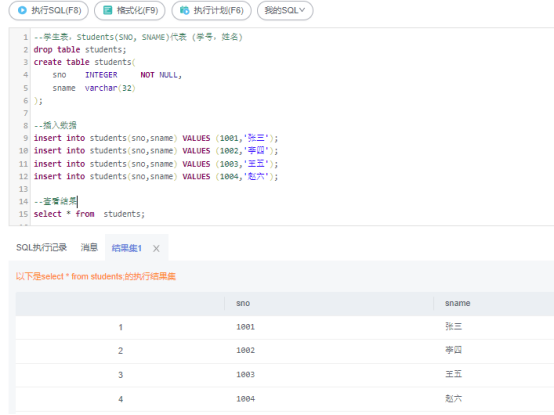 insert into students(sno,sname) VALUES (1004,'赵六');