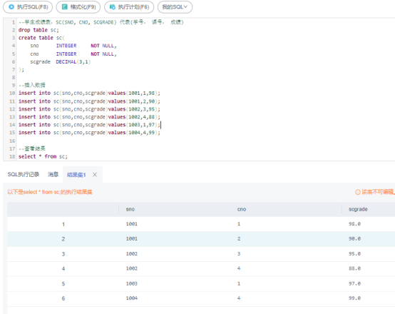 insert into sc(sno,cno,scgrade)values(1001,2,90);
