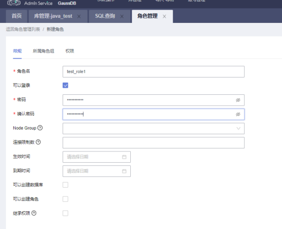 新增普通角色test_role,默认购选登录权限(赋权connect)