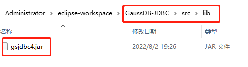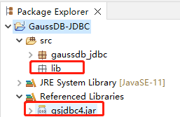 2)在工程src目录下创建lib文件夹,并将解压后的gsjdbc4.jar复制粘贴到此目录