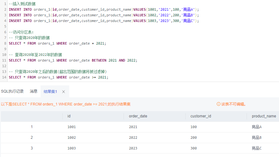 INSERT INTO orders_1(id,order_date,customer_id,product_name)VALUES(1003,'2023',300,'商品C');