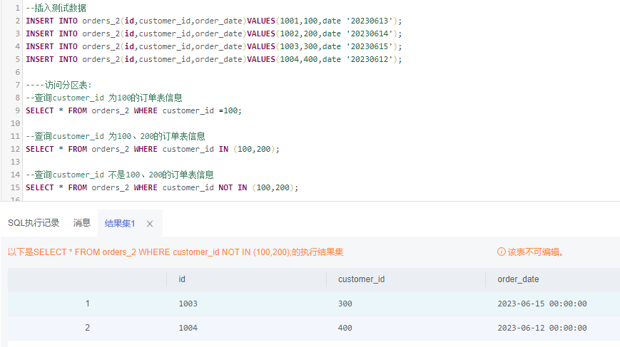 1、假设我们有一个名为orders_2的大表,包含id(订单ID)、customer_id(客户ID)、order_date(订单日期)等字段。现在我们需要根据customer_id进行分区,以便更好地管理和查询这些数据。