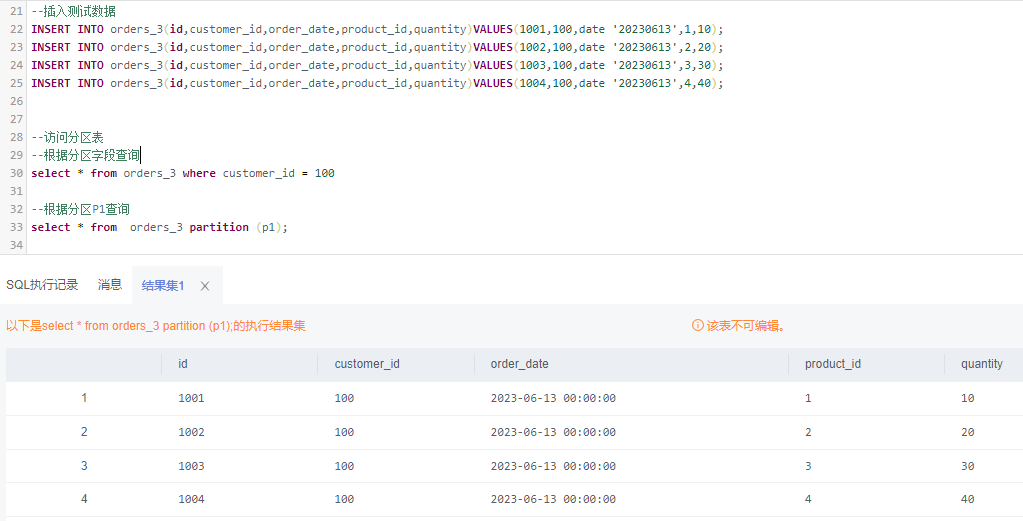 INSERT INTO orders_3(id,customer_id,order_date,product_id,quantity)VALUES(1004,100,date '20230613',4,40);