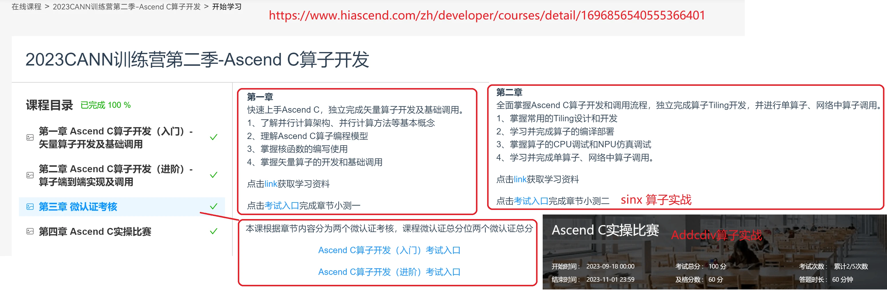 B站“昇腾AI开发者”的合集“合集·CANN训练营2023年度第一季”里有4个视频。里面的内容对小白可能有难,建议在完成前面3项学习后,再听一遍这个课程,相信很多概念就会清晰起来。对算子开发会有更直接、更接近实战的感受和理解。