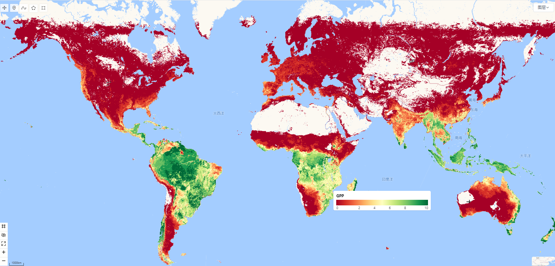 | GPP | uint16 | 8 | 0.05 | 0.01 | 总初级生产力 |