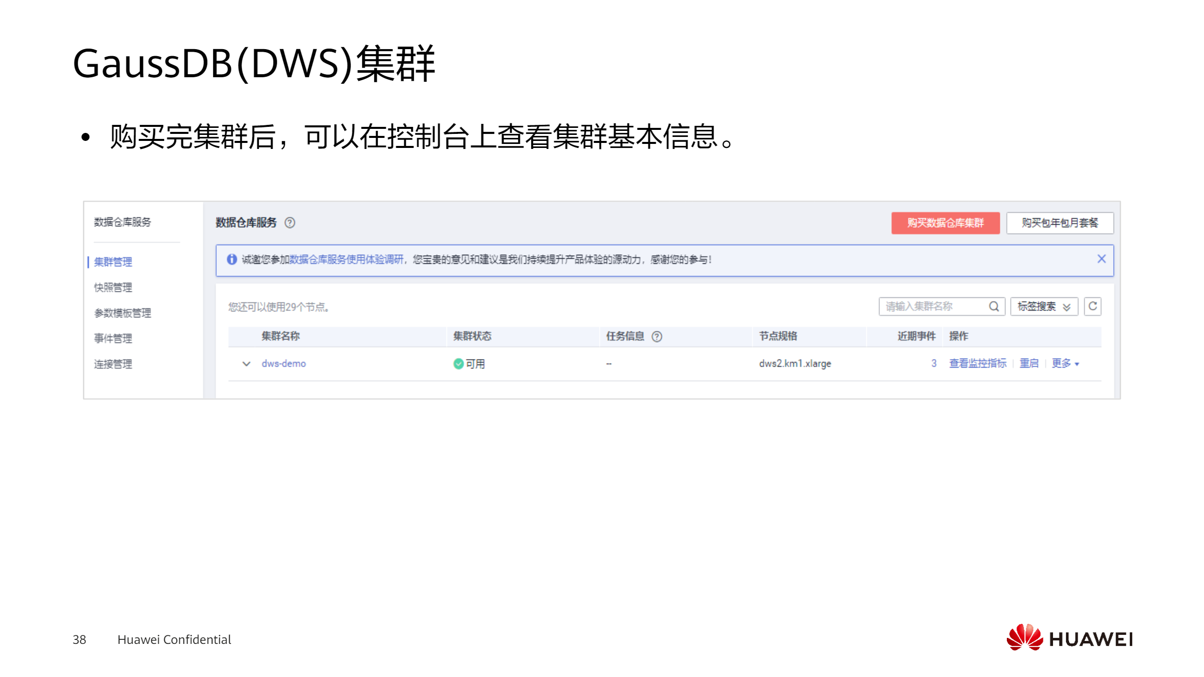 - 分布式架构:GaussDB(DWS)采用分布式架构,可以支持海量的数据存储和高并发的查询与计算。它能够将数据分片存储在多个节点上,实现数据的并行处理和查询优化。