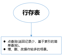 • 行存表(Row-Based Table)是一种以行为单位进行数据的存储方式,每个记录都有一个唯一的行标识符。