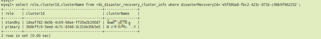 select role,clusterId,clusterName from rds_disaster_recovery_cluster_info where disasterRecoveryId='e5f580a8-fbc2-423c-871b-c96b9f962252';