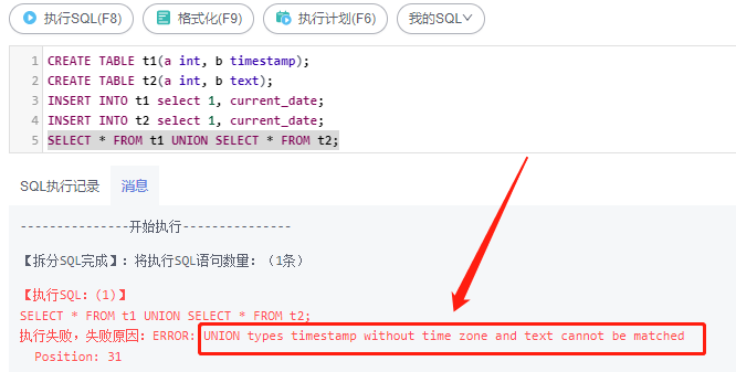 2、“UNION types timestamp without time zone and text cannot be matched”