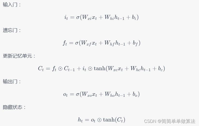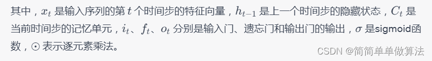 LSTM是一种循环神经网络(RNN)的变体,专门设计用于处理序列数据。LSTM网络通过记忆单元和门控机制来捕捉时间序列中的长期依赖关系,避免了传统RNN中的梯度消失问题。LSTM的核心原理包括三种门控:输入门(input gate)、遗忘门(forget gate)和输出门(output gate)。这些门控机制使LSTM能够选择性地更新和输出信息,从而捕获时间序列中的重要特征。LSTM的状态传递方式可以用以下数学公式描述: