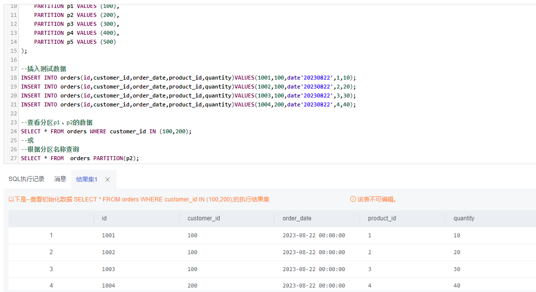 1)删除orders表中customer_id <200的所有数据: