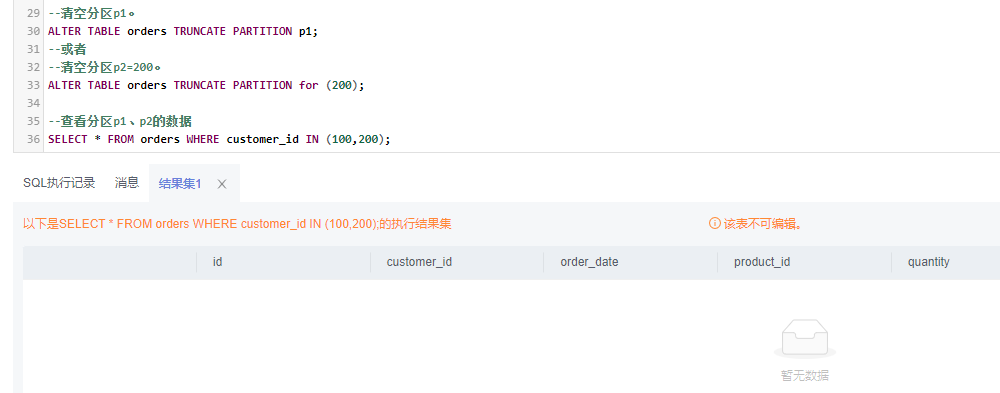 ALTER TABLE orders TRUNCATE PARTITION p1;