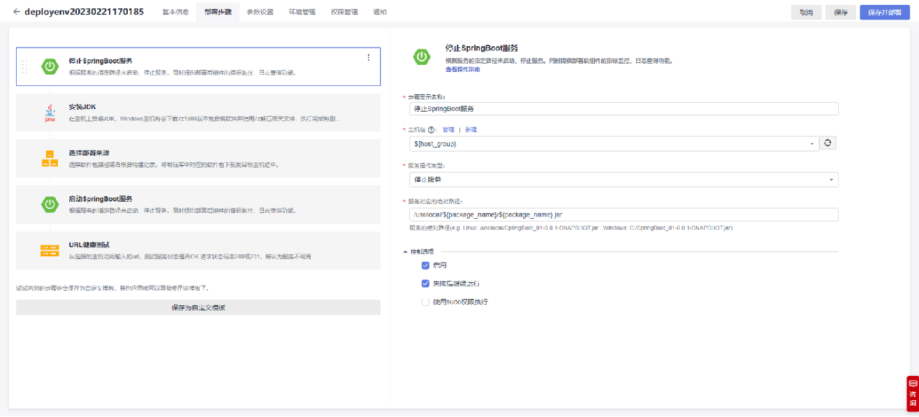 部署提供可视化、一键式部署服务,支持并行部署和流水线无缝集成,实现部署环境标准化和部署过程自动化。