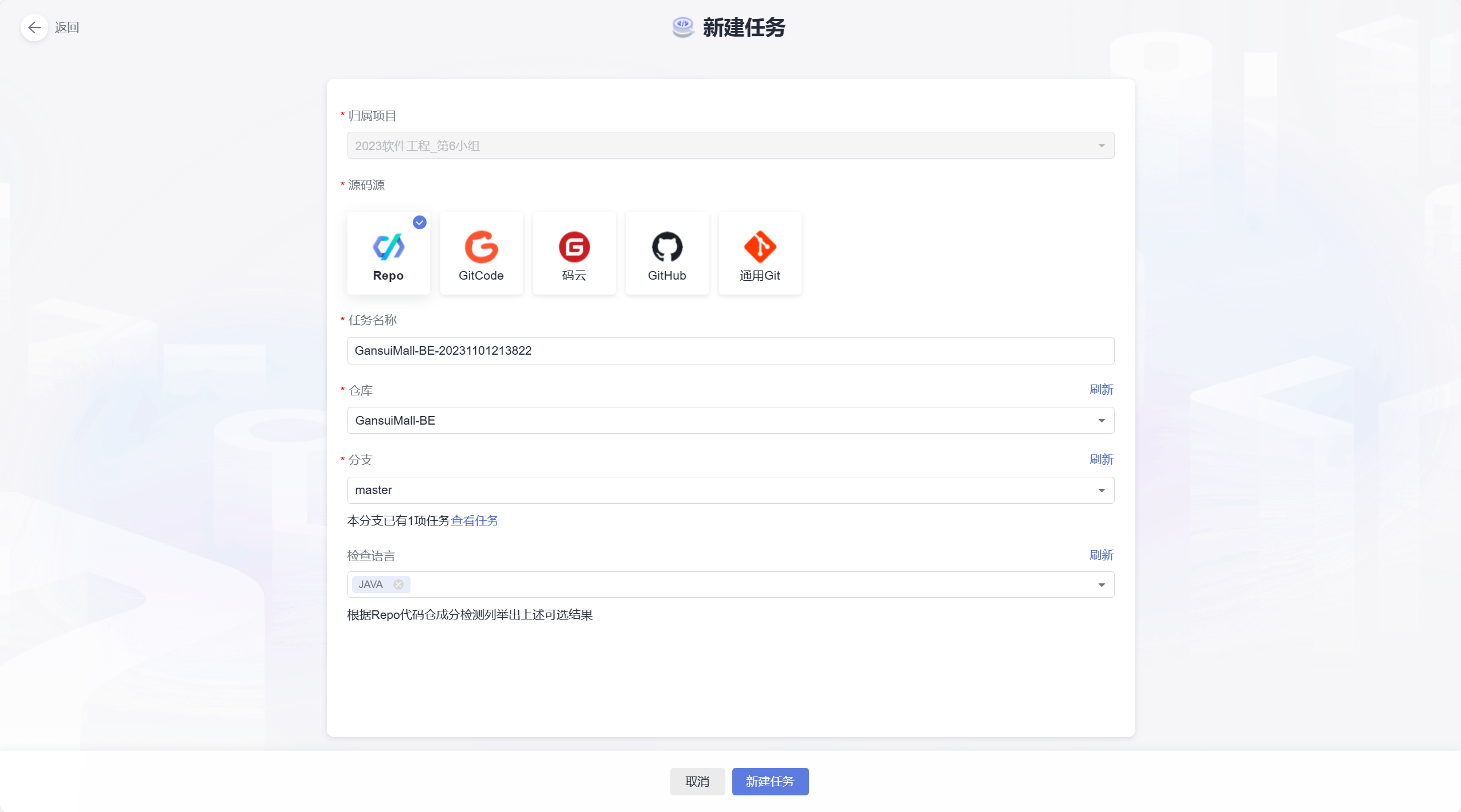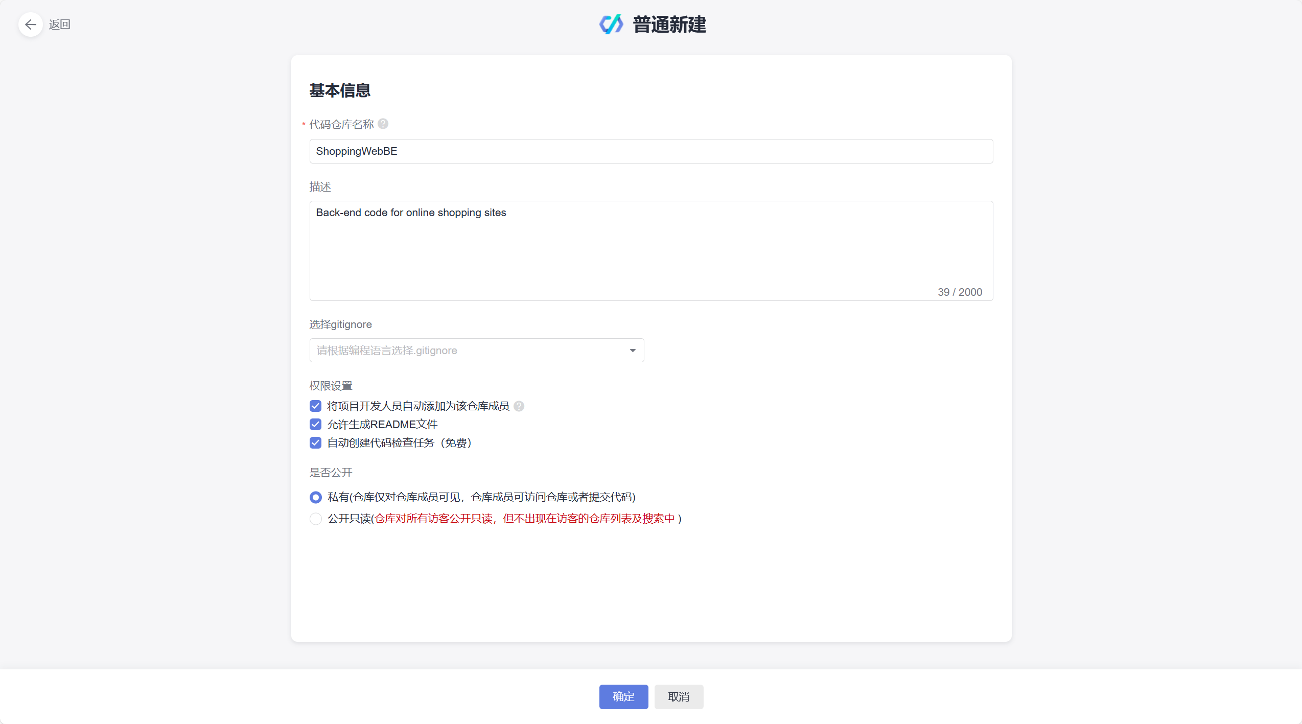 这里支持普通新建、按模板新建、导入外部仓库三种方式。