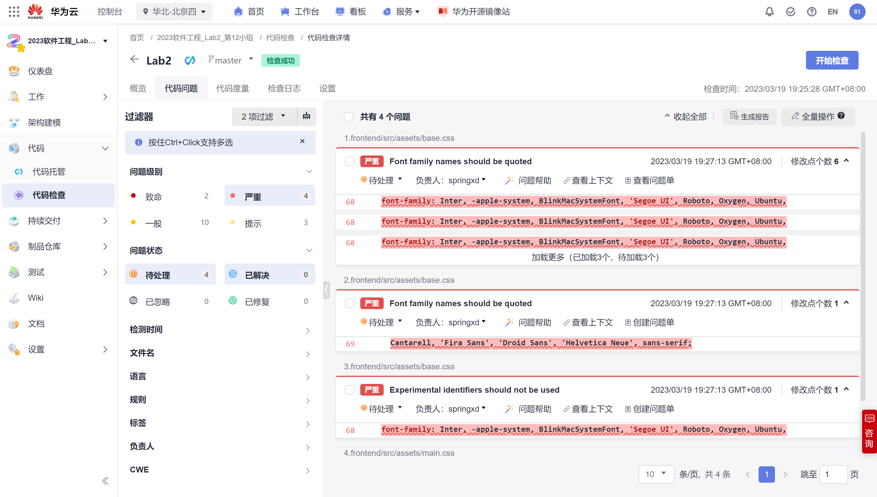 git仓库地址:https://codehub.devcloud.cn-north-4.huaweicloud.cn/2023rjgc_Lab2_d12xz00001/Lab4.git
