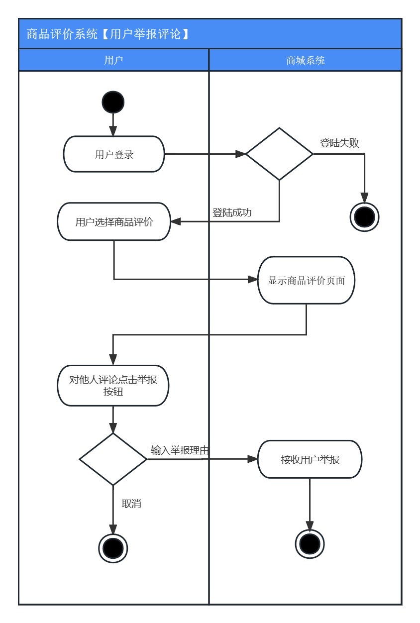 • 目标:用户可以举报他人的商品评论,以便网站或应用管理员审核并处理。