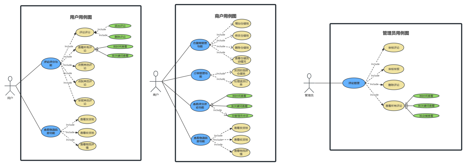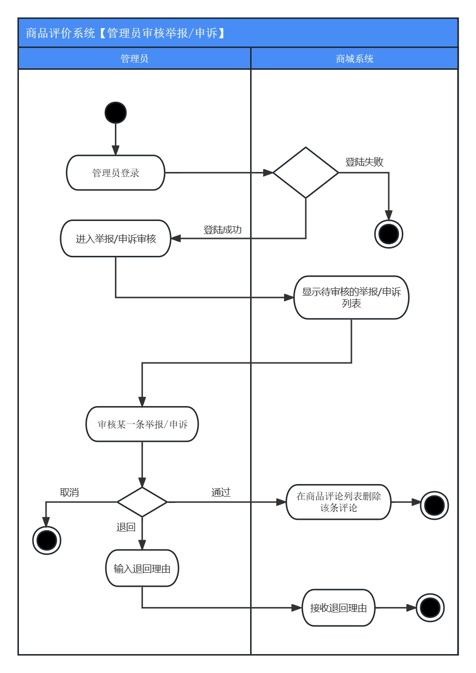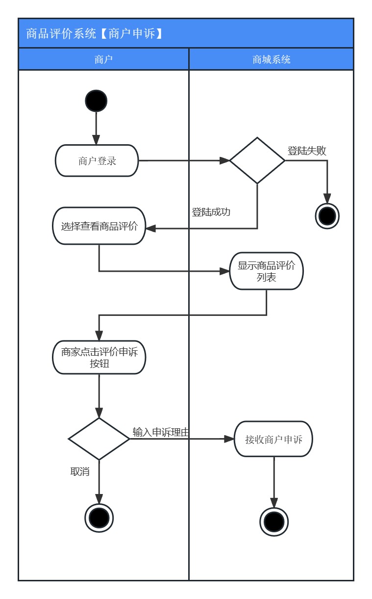 • 目标:管理员可以审核用户的商品评论及举报,审核商户申诉,删除用户评论,以便维持网站评论秩序。