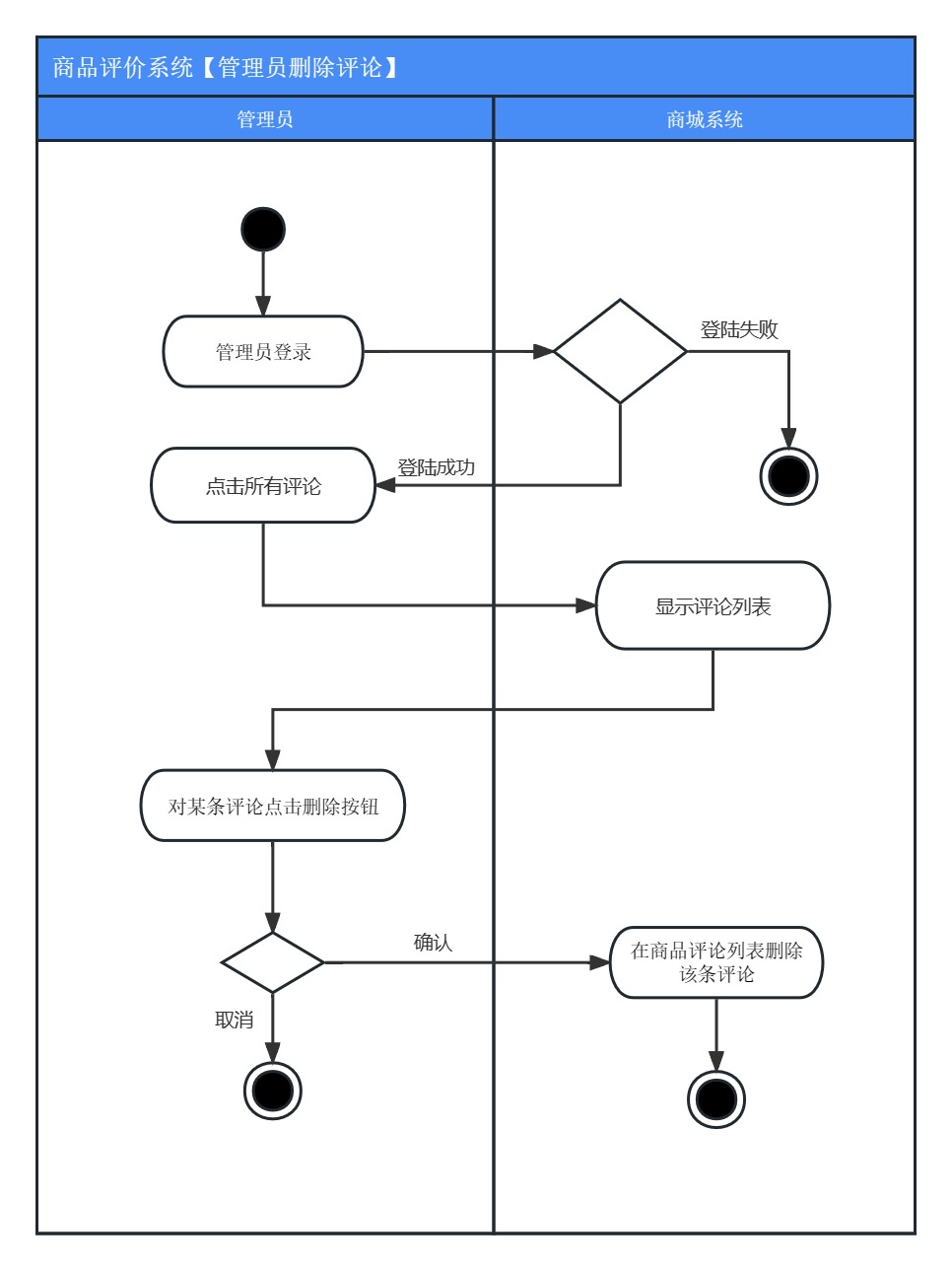 • 主场景:管理员对用户和商户评论进行审核管理