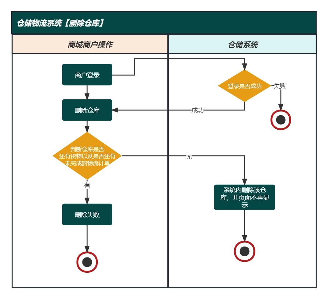 • 目标:在仓储物流系统中删除不再需要的仓库,以停止对该仓库的货物管理和跟踪。