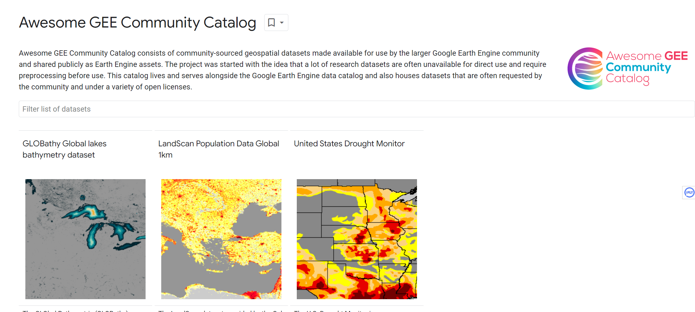 Awesome GEE 社区目录本身包含约 320+TB 的数据和来自不同领域的 1300+ 个数据集。