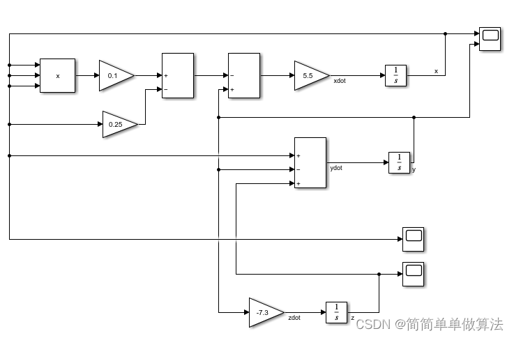 电路的状态变量由 xx, yy, zz 表示,其非线性微分方程可以写为: