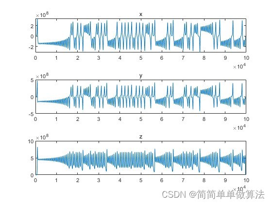 将vivado的仿真结果导入到matlab显示三维混沌效果: