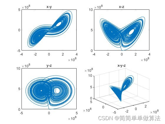 洛伦兹混沌系统由三个耦合的一阶常微分方程组组成,这三个方程描述了三个状态变量(或者说是维度)之间的关系。这些状态变量表示系统在空间中的位置,从而形成一个三维相空间,该相空间中的轨迹表现出异常的复杂性和混沌特性。